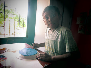 Libia used the time today to work with a student, Duban, who has shown some psychological concerns and has demonstrated very aggressive behavior during his time at CSF. He was not able to participate in activities today due to the fact that he had spent art day running around doing his best to disrupt all the other kids and his 'coup de tat' of the day was to take handfuls of paint and smear them all over the other kids.
